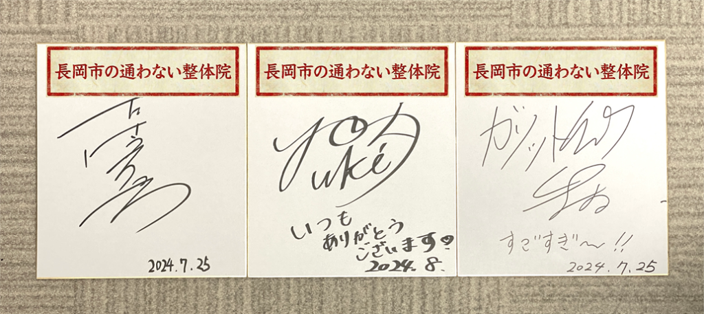 ※プライバシー保護の観点から、お名前の公表は控えさせていただいております。(写真は実際に頂いたサイン色紙の一部です)